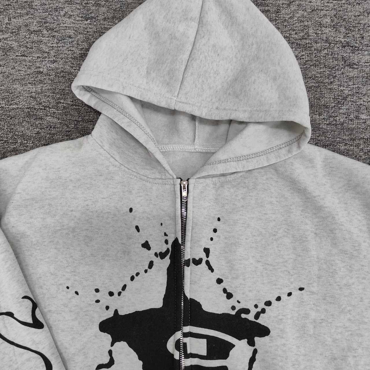 Star No. 1 Printed Hooded Jacket European and American Street Fashion Hip Hop Zipper Cardigan Sweater New ins for Men and Women