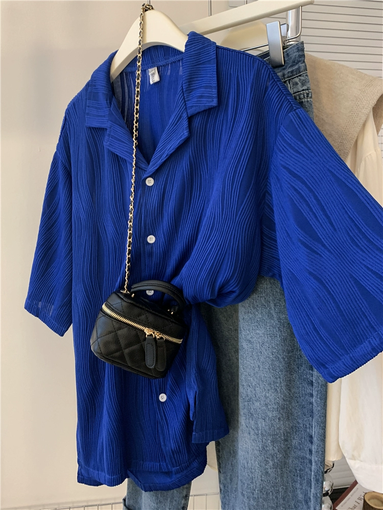 2024 Spring and Summer New Vintage Denim Japanese Loose Thin All-match dark blue Doll Collar Short-sleeved Shirt recommend