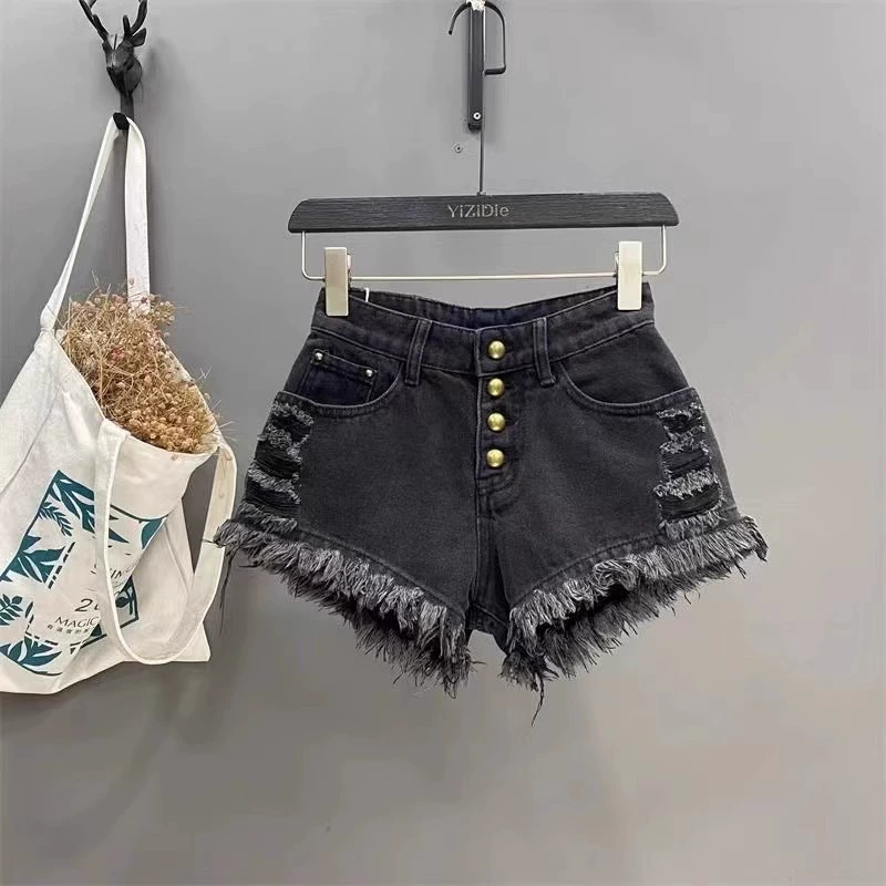 Type A edge summer Korean version of low -waist denim shorts