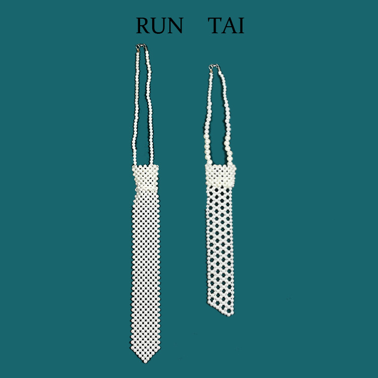 Internet celebrity retro popular fashion pearl beaded handmade tie clothing matching adjustable length tie No. 4
