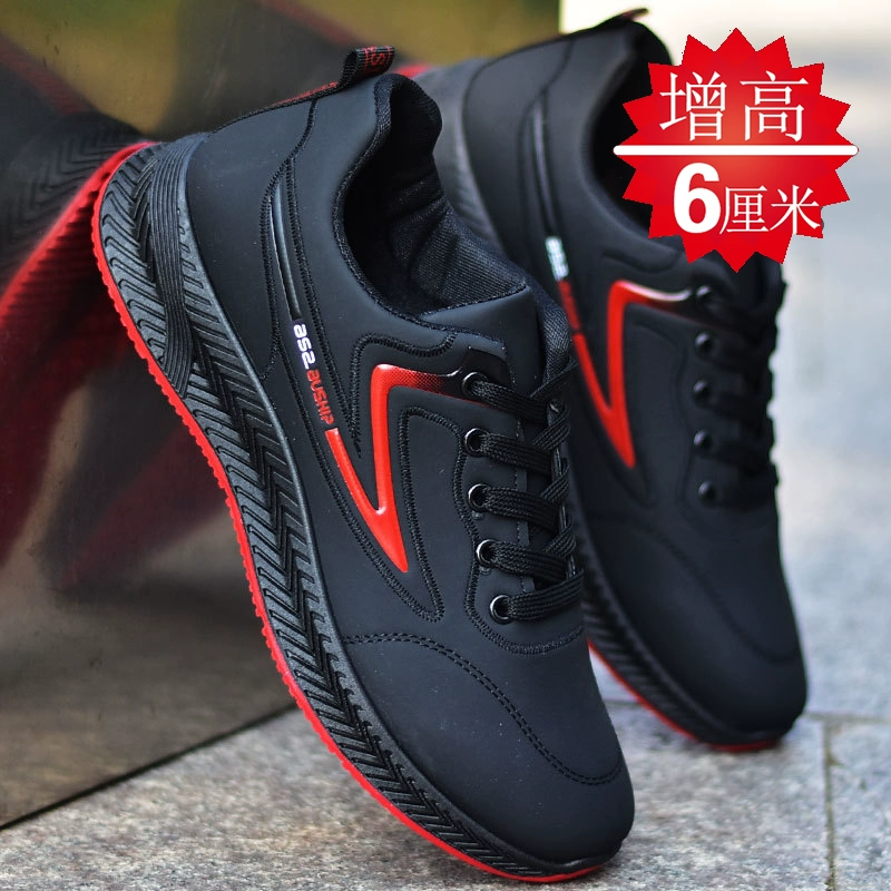 New men’s shoes leather sneakers Spring, autumn and winter men’s casual shoes increase large size black waterproof shoes work