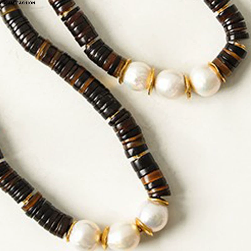 Color pearl necklace female shell double clavicle chain