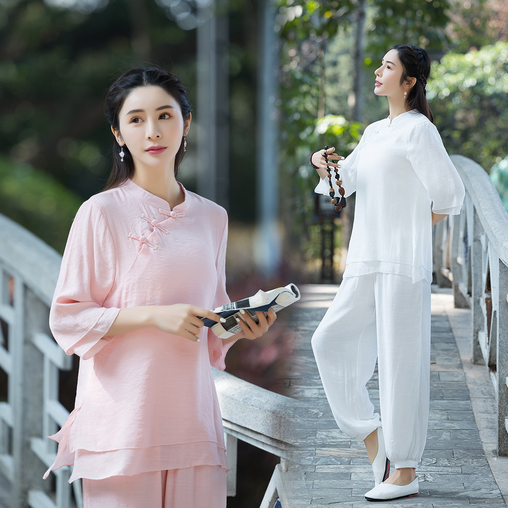 2024 New Chinese Style Hanfu Cotton and Linen Yoga Suit Zen Tea Suit Women’s Meditation Husses’ Suit Spring