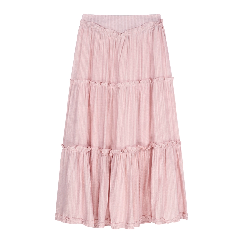 Chic pink square neck sweet and spicy long skirt two-piece set with short sleeves