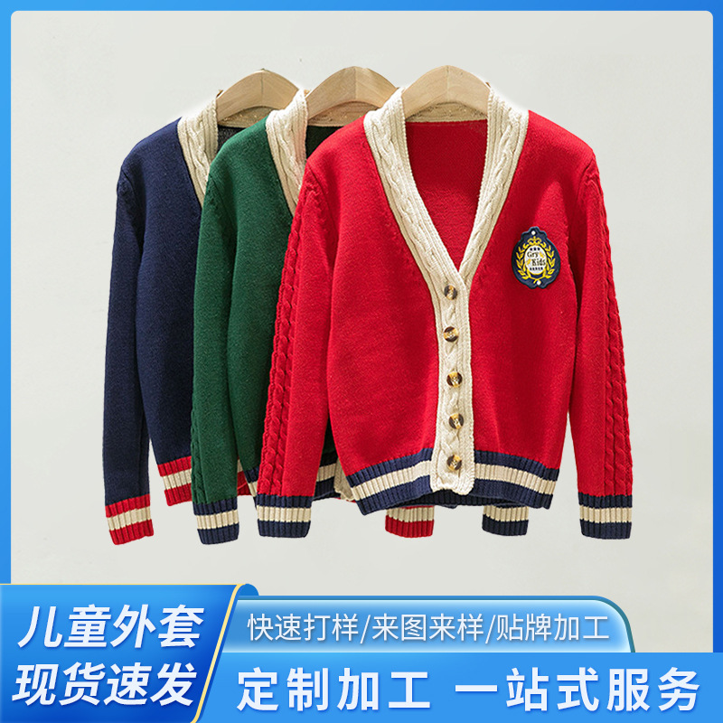 Spring Autumn Winter Children’s Thick Cardigan Sweater Male and Female Students School Uniform Kindergarten Garden Clothes Class Clothes Cotton Knitted Coat