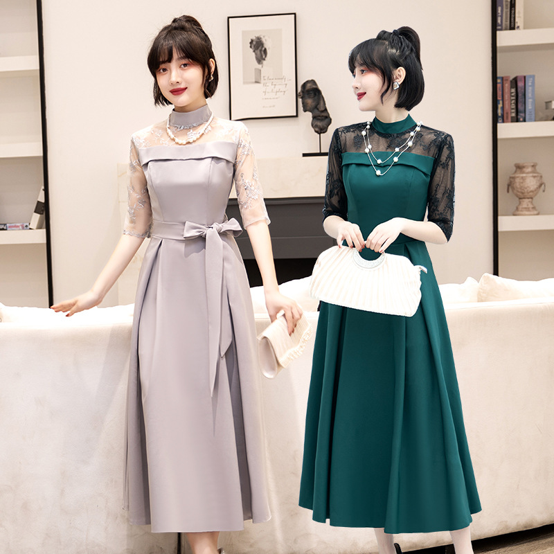 Factory wholesale 2023 new banquet elegant long annual meeting host dress sleeve thin evening dress women