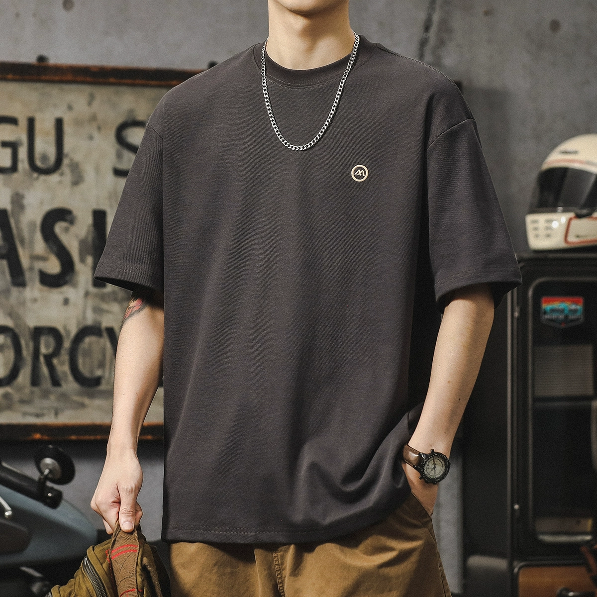 Heavy explosion men’s Japanese simple half -sleeved embroidery