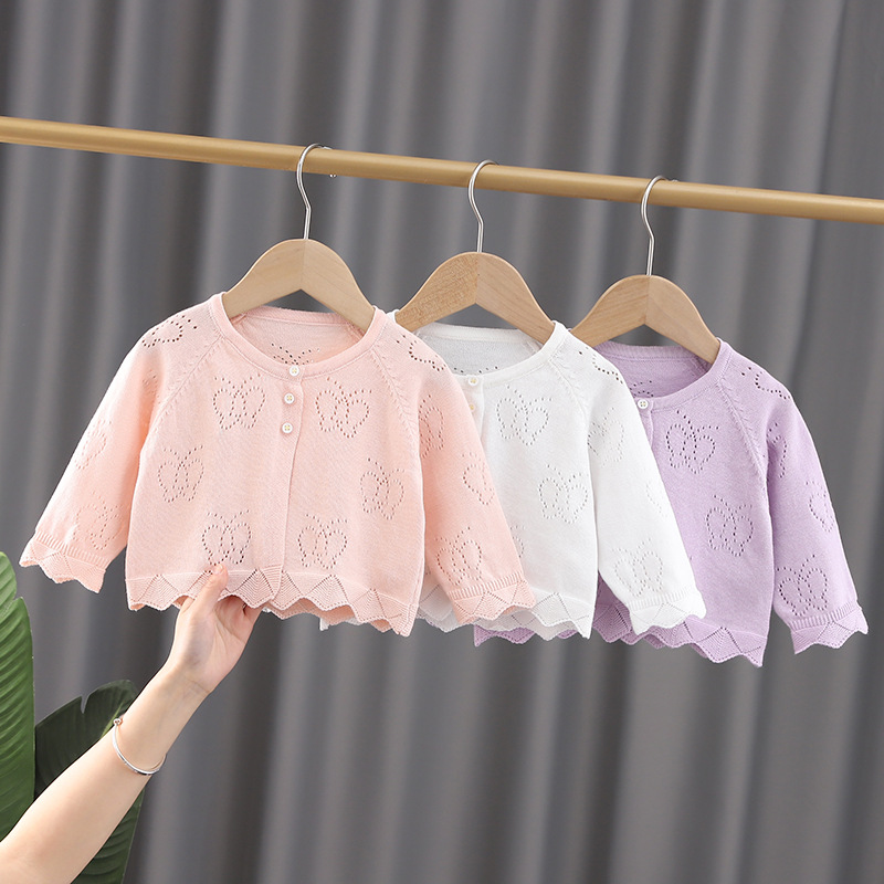 2023 Spring and Summer New Children’s Knitted Cardigan Shawl Pure Cotton Baby Thin Hollow Air Conditioning Shirt Princess Sunscreen Coat