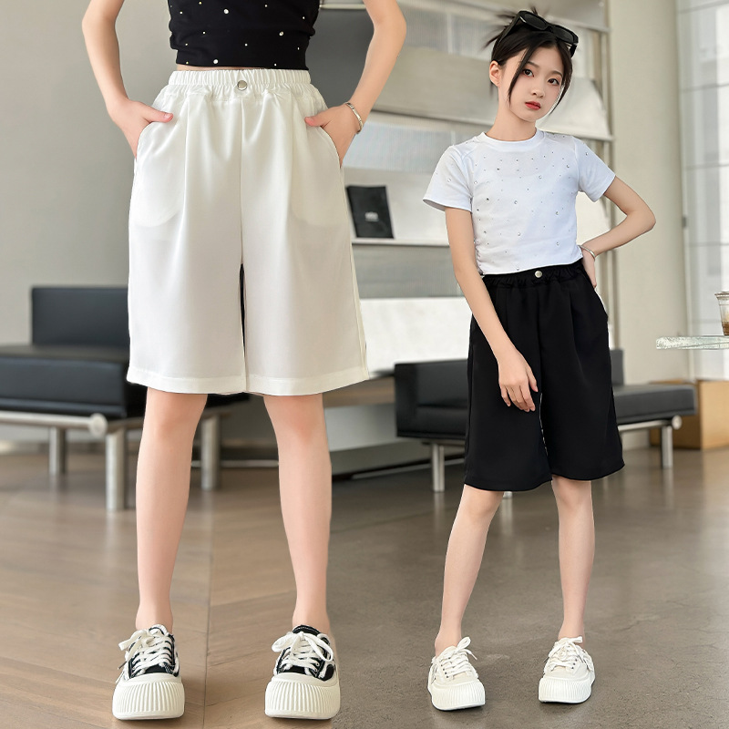 Girls’ Summer Pants 2024 New Korean Style Middle and Large Children’s Thin Loose Straight Wide-leg Suit Mid-length Pants