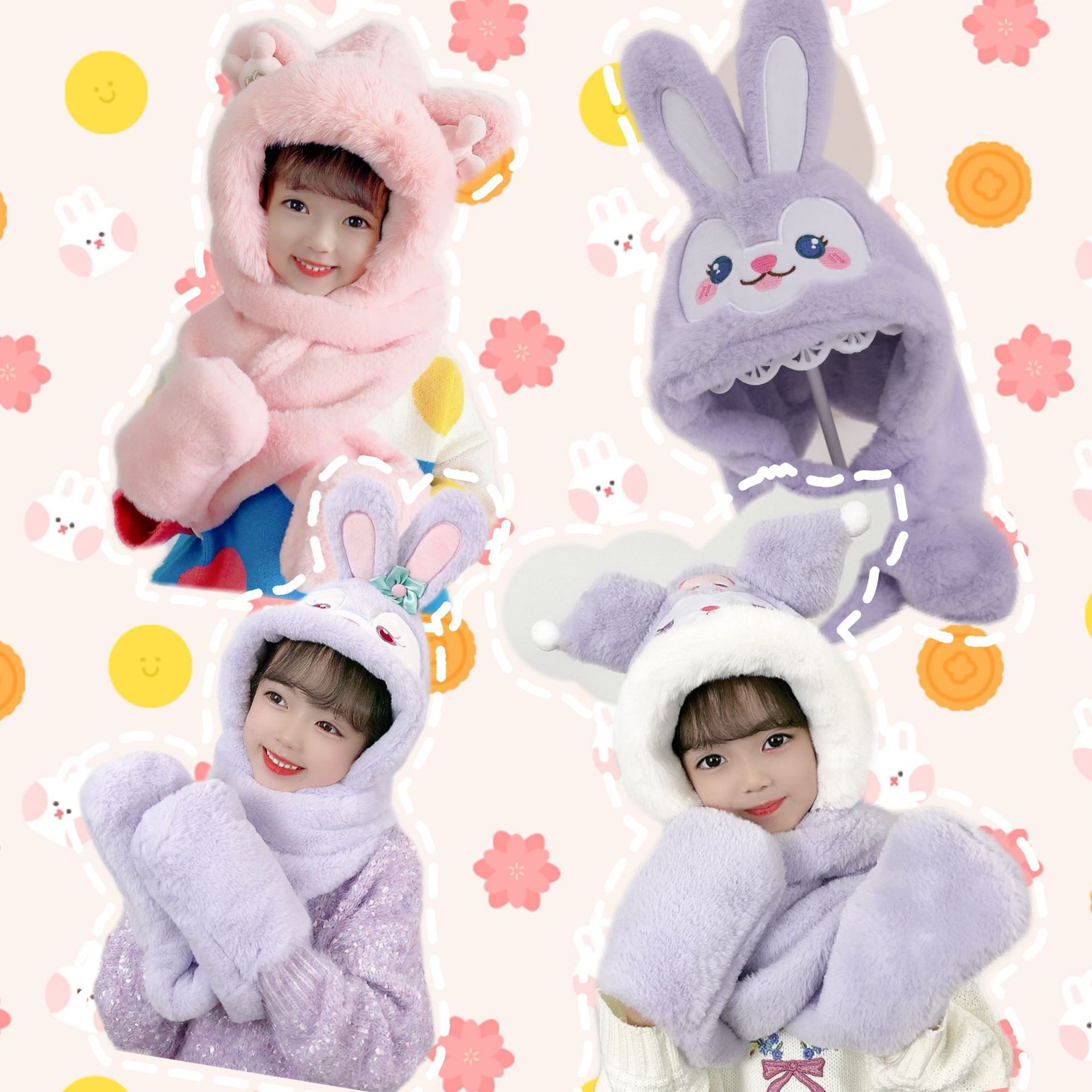 Children’s Hat Scarf Three-Piece Set for Boys and Girls Autumn and Winter Gloves Baby Cute Three-Piece Winter Stylish Fashion Children’s Hat