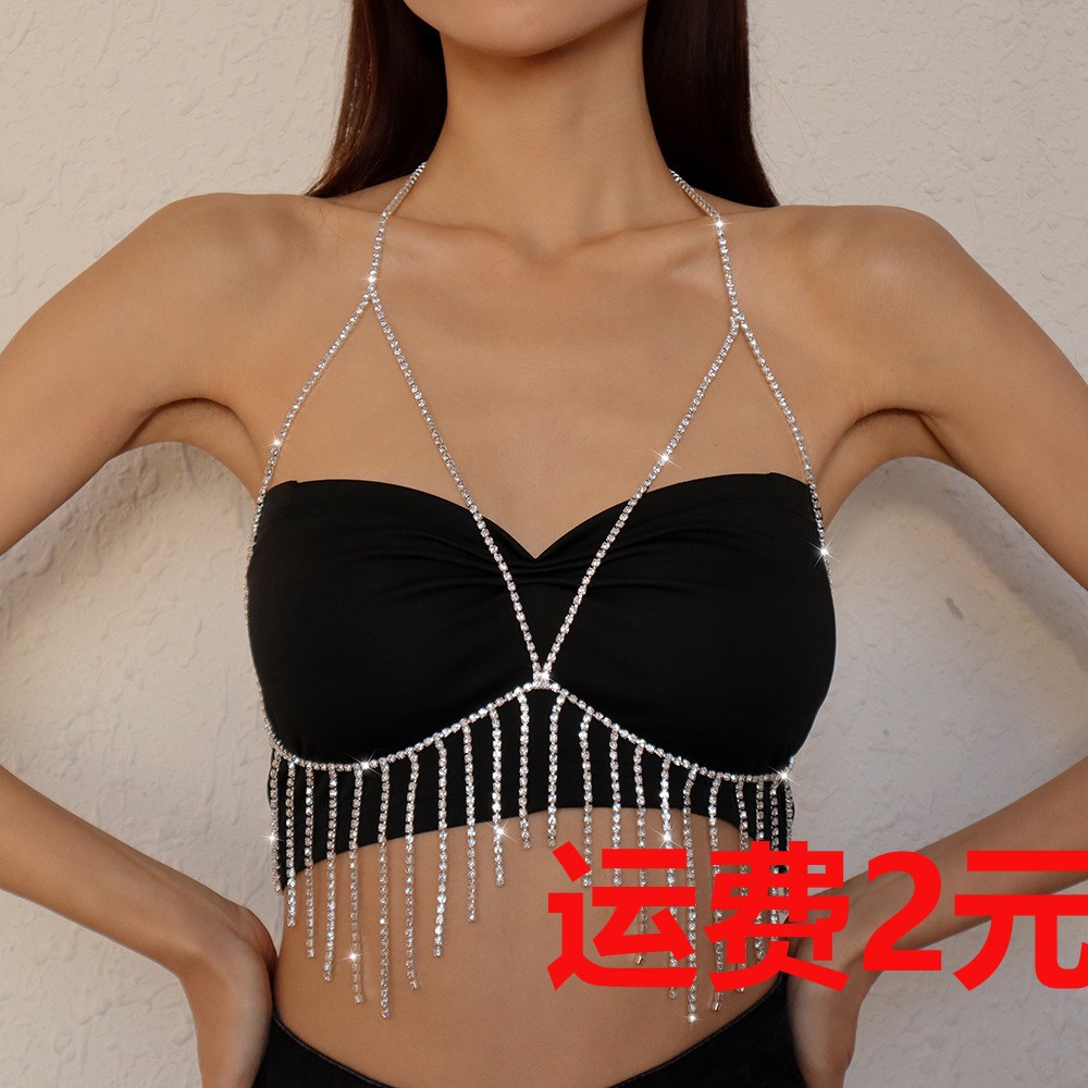 C0289 European and American style exaggerated beach bikini sexy body chain fashion metal tassel diamond temperament chest chain