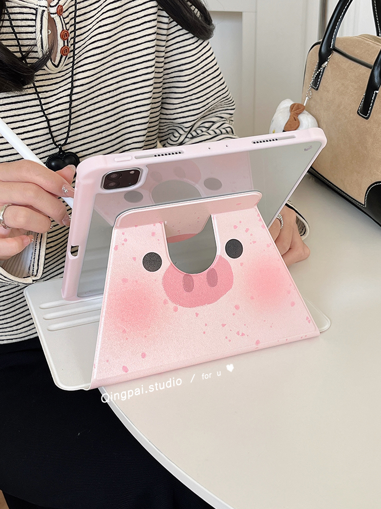 Lightweight ipad protective case new pro protective case cute pink piggy air4/5 with pen slot 360 degree rotating stand Apple ipad tablet 10 protective case 9 magnetic suction 12.9 inch