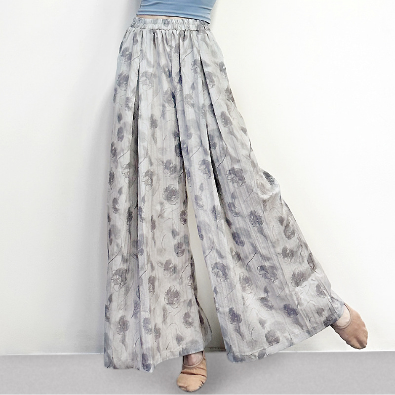 New Chinese Style Dance Practice Clothing Women’s Modern Ethnic Classical Dance Printed Ink Pants Wide Leg Pants for Adults