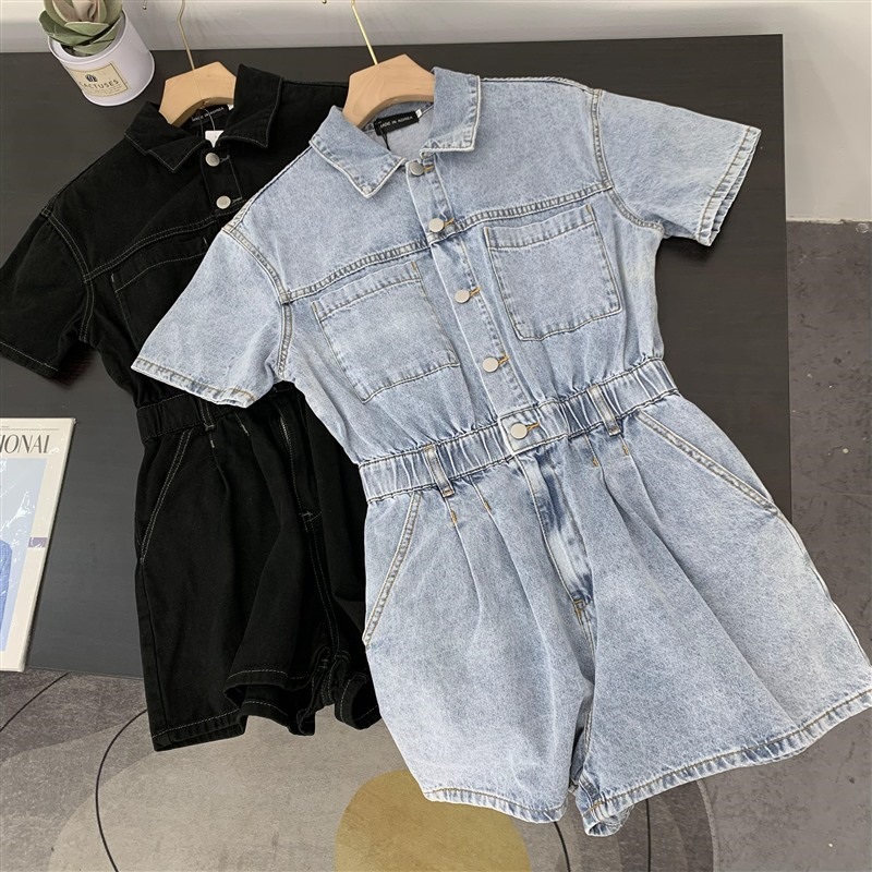 Denim Jumpsuit Shorts Summer New Slim Casual Pants Wide Leg All-match Simple Women’s Clothing# Black