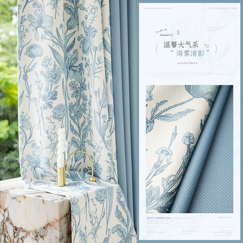 Haze Blue Public Curtain Curtain Light luxury high -end atmospheric cotton and linen thick stitching contrasting bedroom shading 2024 new model