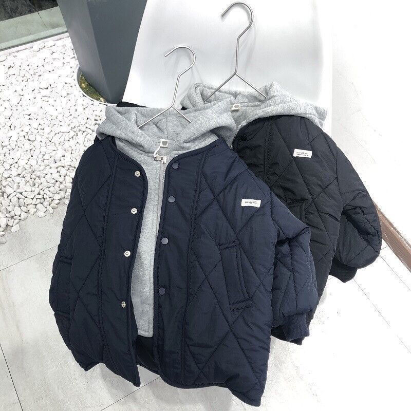 Boys’ cotton-padded clothes boys and girls stitching two-piece hooded cotton-padded clothes 2023 Winter Children’s mid-length warm western style coat