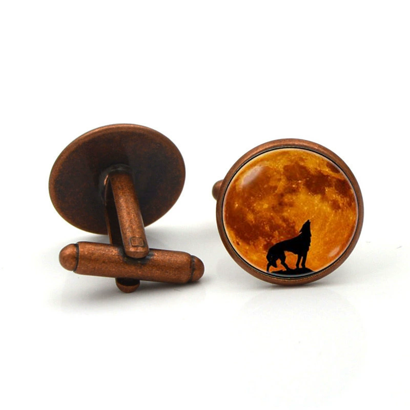 Wolf howling under the starry sky, time gem cufflinks, European and American high-end men’s clothing, sleeve studs, buttons, foreign trade accessories