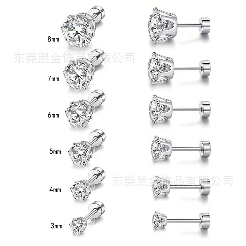 European and American titanium steel fine needle six claw round 18k gold plated zircon earrings unisex earrings fashion piercing jewelry