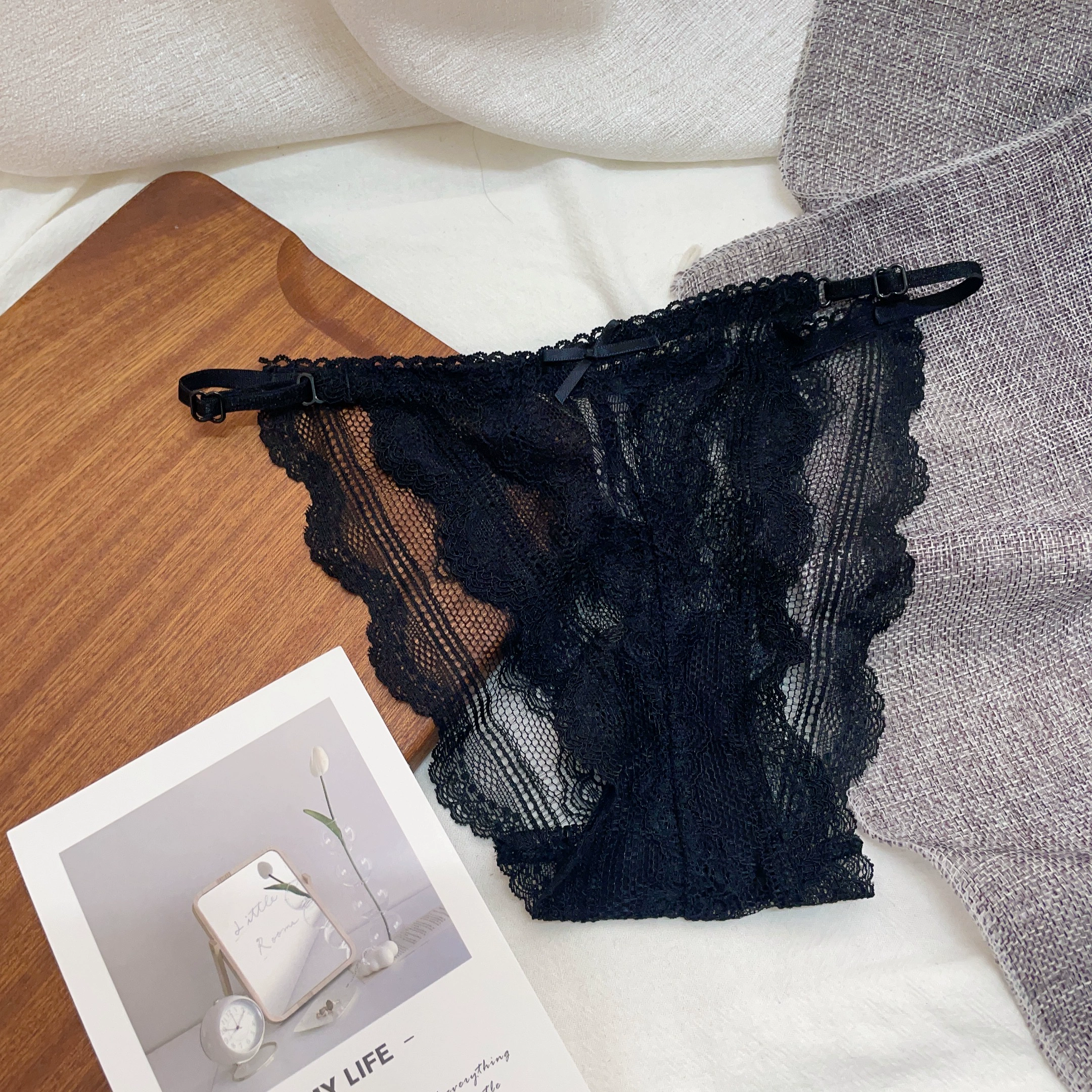 Low -waist sexy lace trousers female transparent seductive seductive European and American underwear thin summer new solid color hollow pants cotton stall