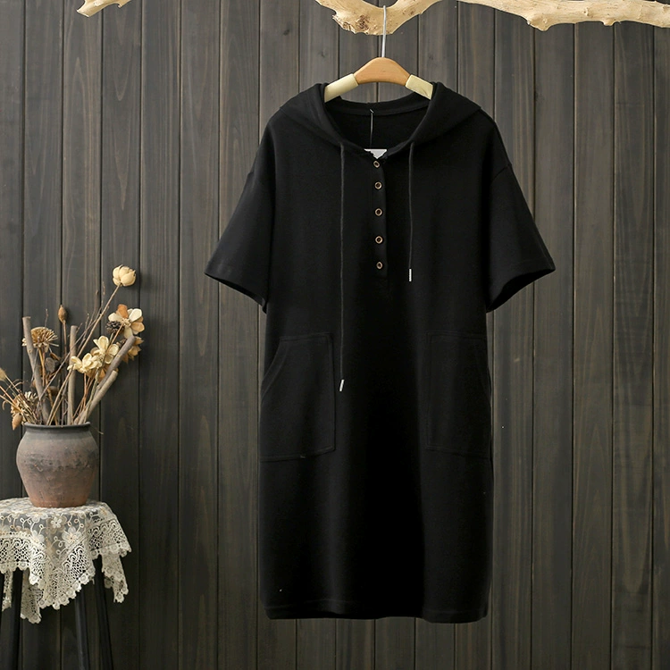 Summer 200 kilograms of casual belly-covering solid color sweatshirt dress