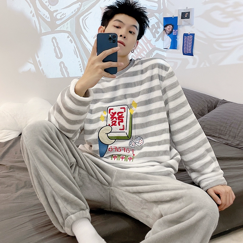 Men’s thickened dad’s young and middle-aged flannel pajamas