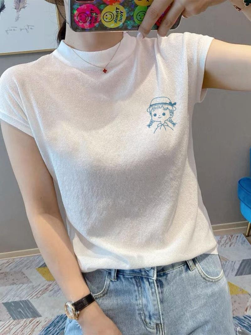 T European White T-shirt Women’s Summer Short-sleeved Beautiful Fashion Ice Silk Knitted Shirt Niche Inner Jacket 2024 New