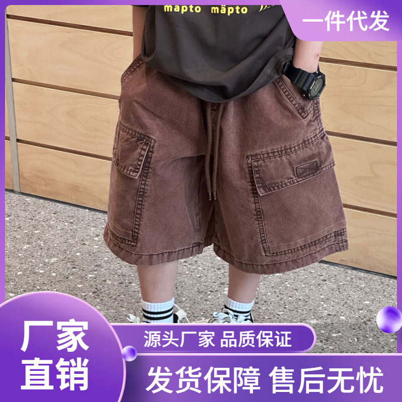 Tairu 2024 Summer New Korean Style Boys’ Fashion Western Style Tooling Fried Color Western Style Jeans Children’s Shorts Trendy