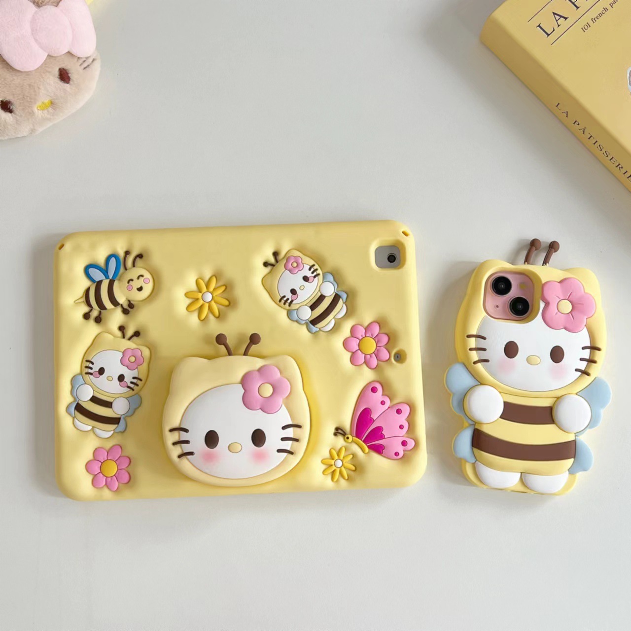 Cute Bee Apple iPad 10 Tablet PC Silicone Protective Cover Telescopic Bracket Mini6 Three-dimensional Anti-fall Shell