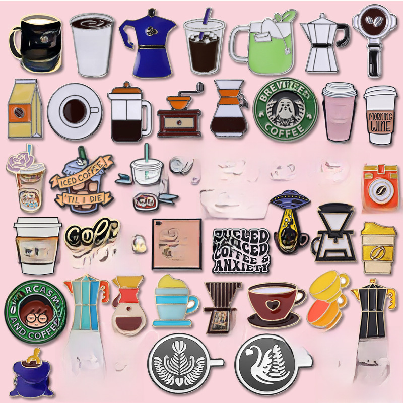 European and American English cross-border coffee series brooch collection suit metal badge clothing accessories versatile drink milk tea