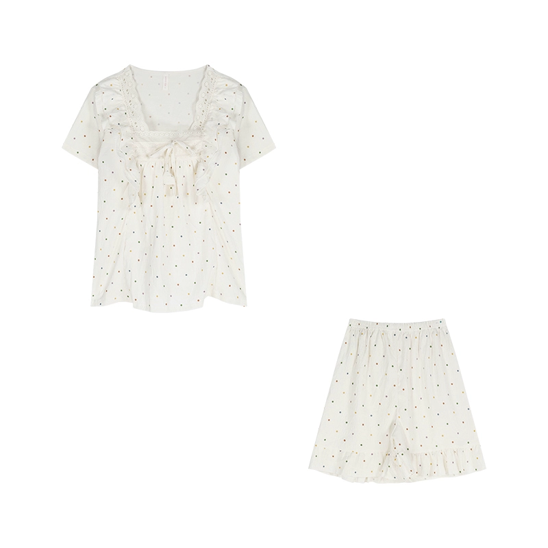 Sweet polka-dot pajamas set lace short-sleeved T-shirt top women’s summer casual shorts home wear two-piece set