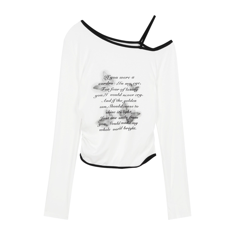 Butterfly letter printed off-shoulder slim long-sleeved T-shirt