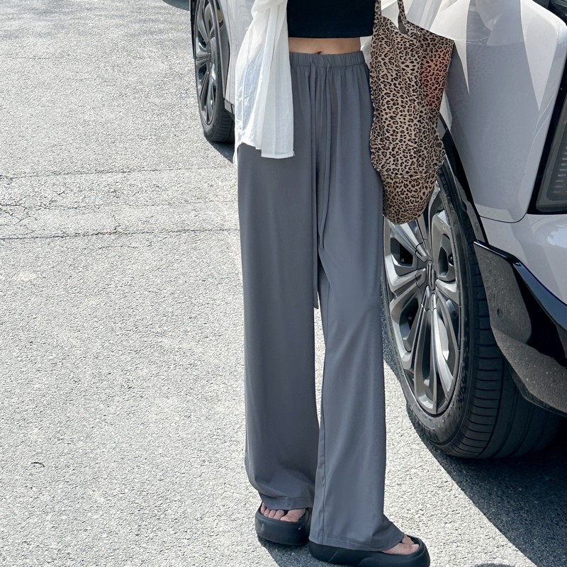 062005 Summer New Women’s Thin Daily Simple Front Crumpled High Waist Loose Two-color Wide Leg Casual Pants