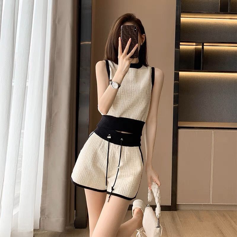 2024 Chanel Style Knitted Summer New Spice Girl Tight Waist Women’s Sports Style Two-Piece Casual Fashion Shorts suit