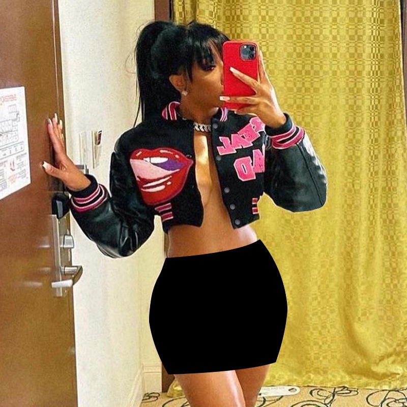 JFL23528 Long-sleeved Patchwork Letter Printed Short Jacket Coat European and American Autumn and Winter All-match Hot Girl Baseball Suit for Women