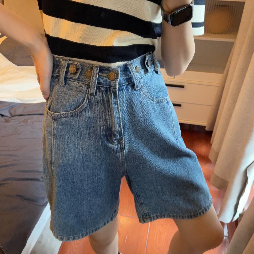 Pear-Shaped High-Waist Denim Shorts Women’s Summer Thin plus size chubby girl All-Match Wide-Leg Loose A- Shape Pants