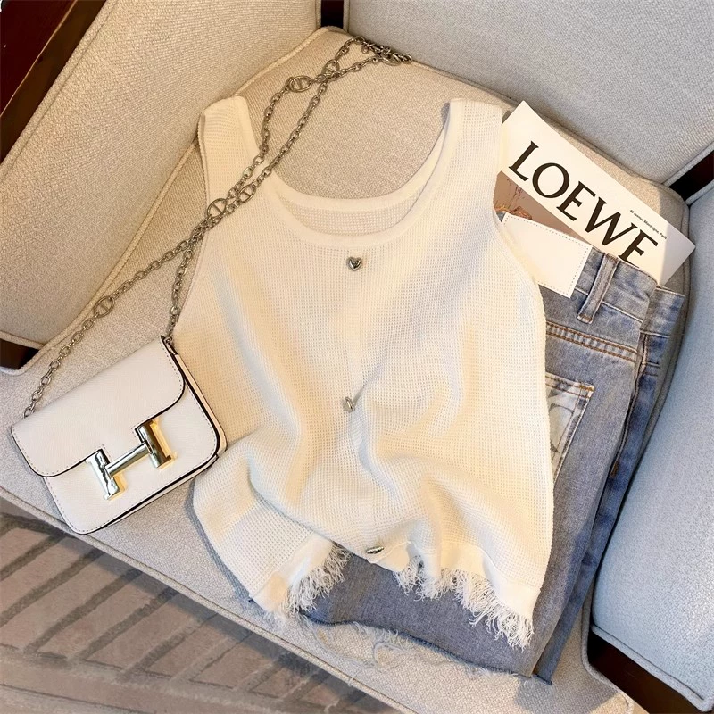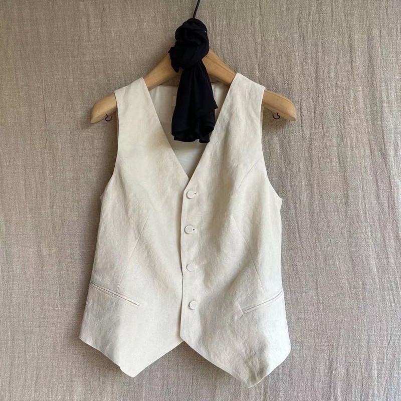 High Sense Suit with Vest Clip Women’s 2024 Summer New Niche Design Thin Cotton and Linen Vest for Outer Wear