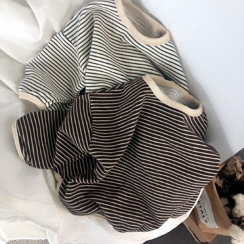 Baby Boys and Girls Spring and Autumn Clothes Fresh Artistic Loose Striped Crewneck Sweater Children’s T-shirt All-match Basic Base Shirt
