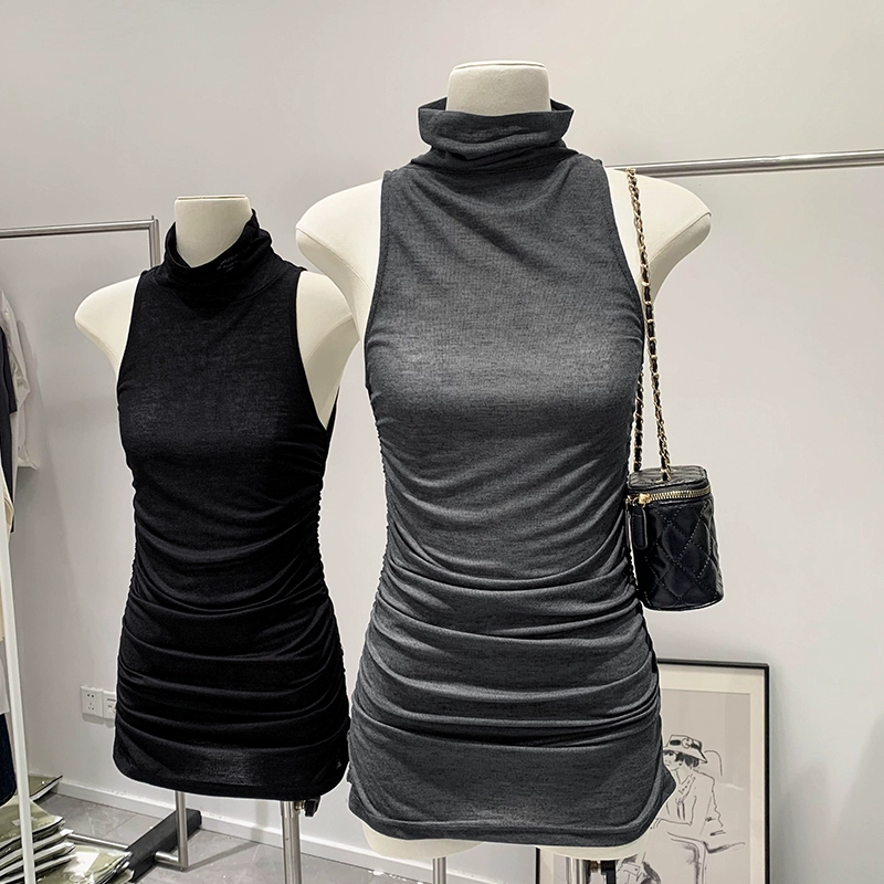 European and American hot girls high collar sleeveless pleated waist dress 2024 summer new sexy butt-covering suspender skirt
