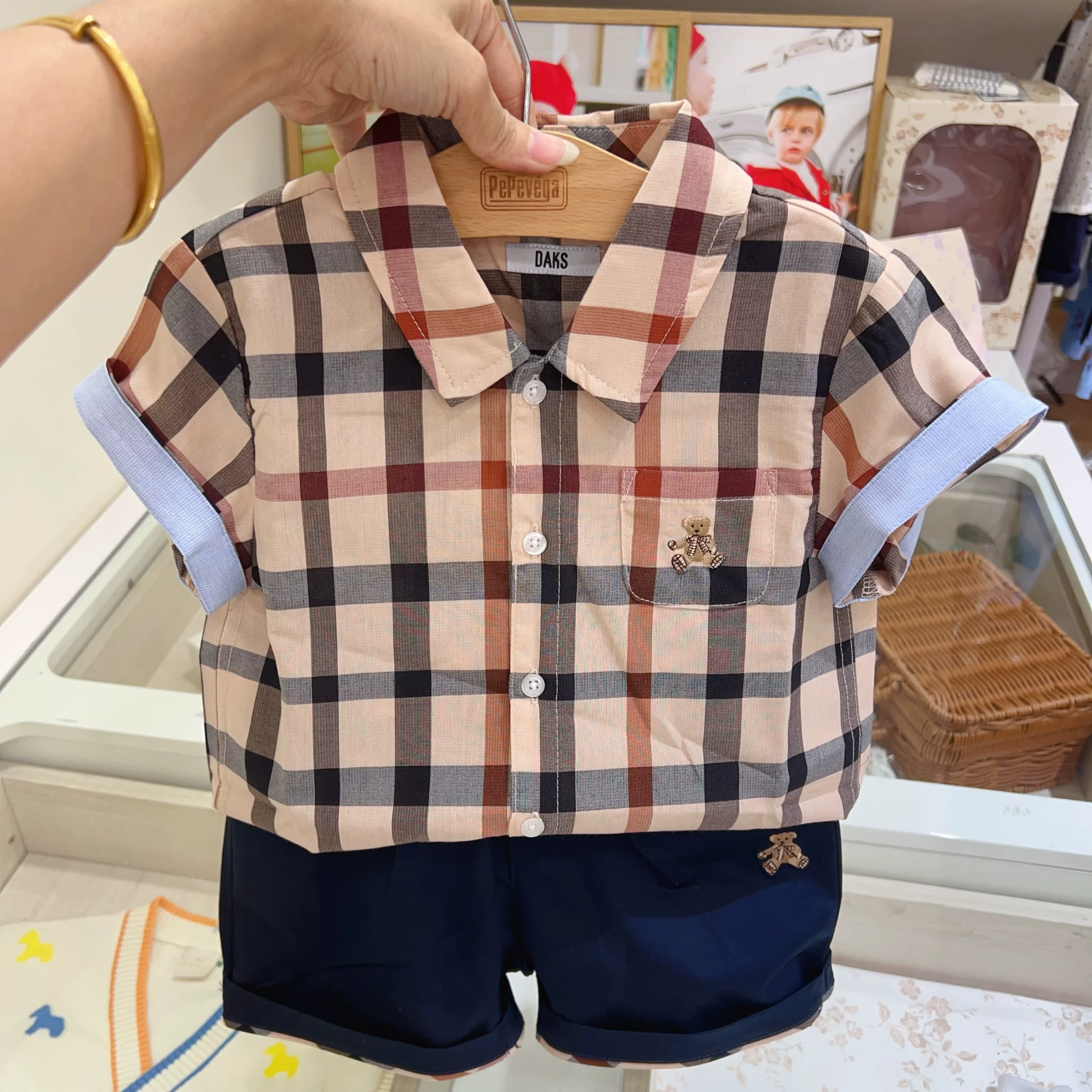Boy’s short-sleeved shirt handsome lapel plaid children’s clothing
