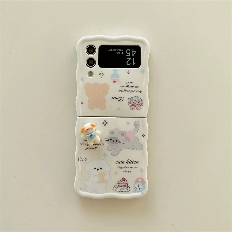 INS Cute Cat Dog Bunny Samsung ZFLIP5 mobile phone case folding screen zflip4 silicone protective cover zflip3 anti -fall soft shell F7310 creative cartoon W24 FLIP personalized female model flip cover