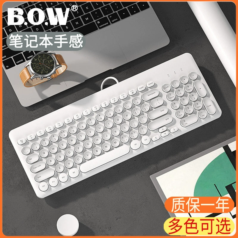 BOW Hangshi Laptop Wired Keyboard and Mouse Set Silent Silent Cute Girls Typing Special Desktop USB External Small Wireless Keyboard and Mouse Chocolate Game Mechanical Feel