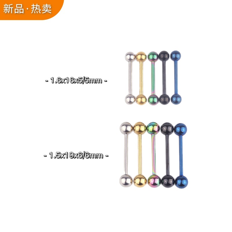 2024 European and American simple small fresh tongue nail electroplated stainless steel piercing jewelry geometric ball straight bar barbell shape