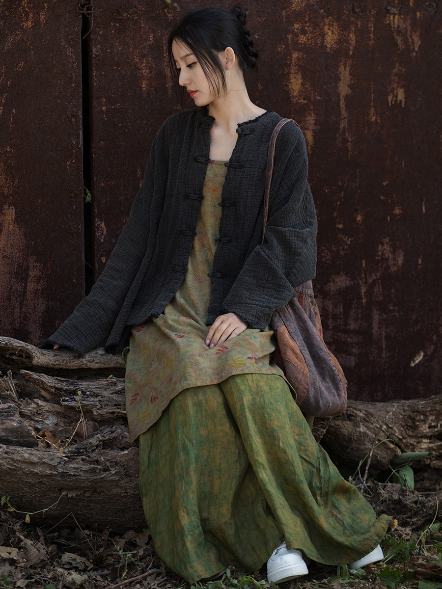 New 24 Spring Cotton and Linen Women’s Clothing New Wrinkled Texture Stir-fried Color Old Button Coat Home Travel Meditation Women