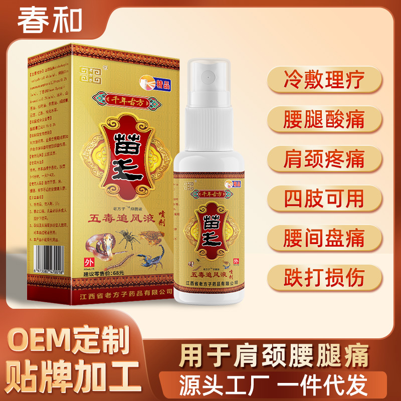 Miao Wang Wudu wind-chasing liquid spray soothing tendon liquid waist and leg joint pain running rivers and lakes factory direct wholesale delivery