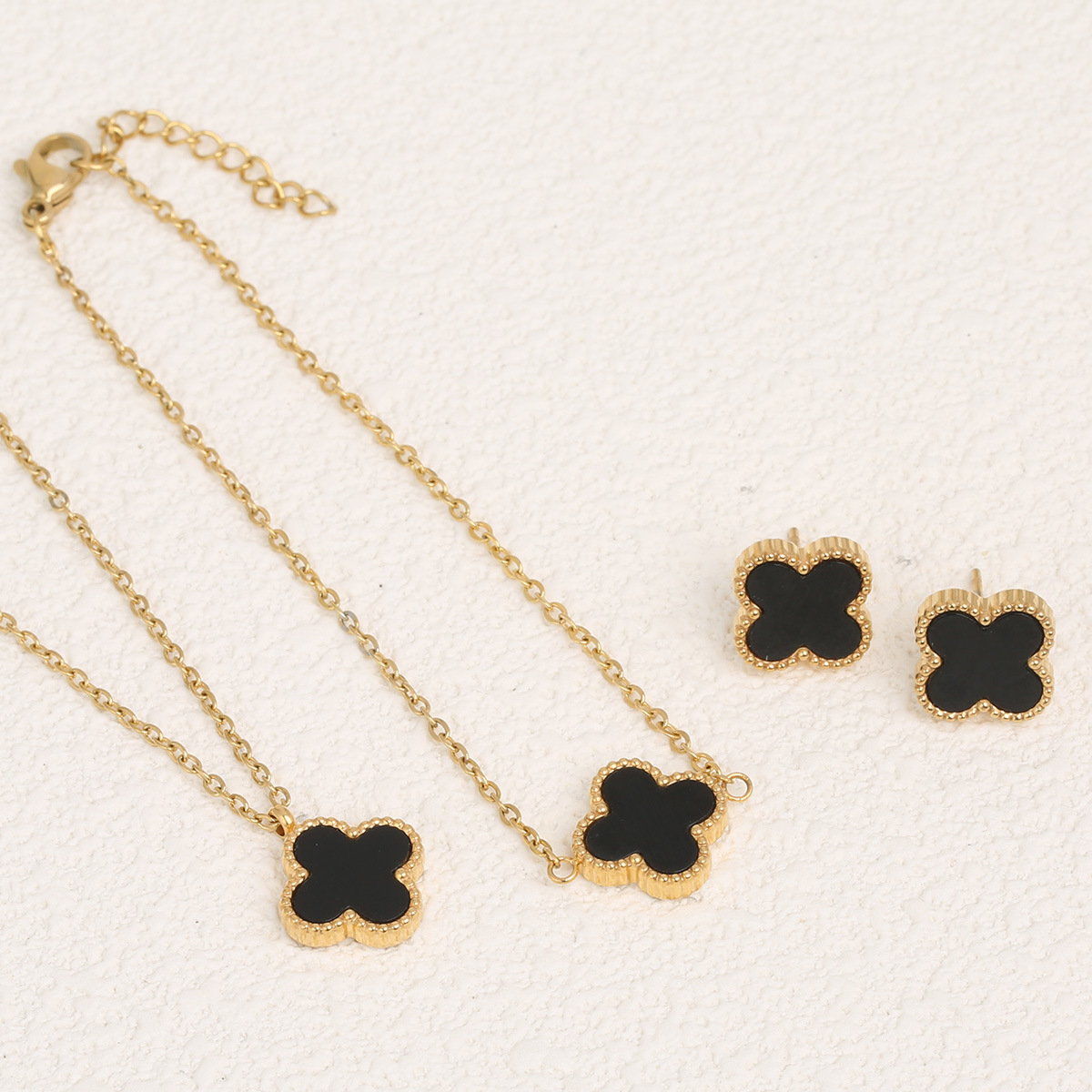Cross-border e-commerce Amazon explosions lucky four-leaf clover necklace bracelet earrings stainless steel high fashion three-piece set