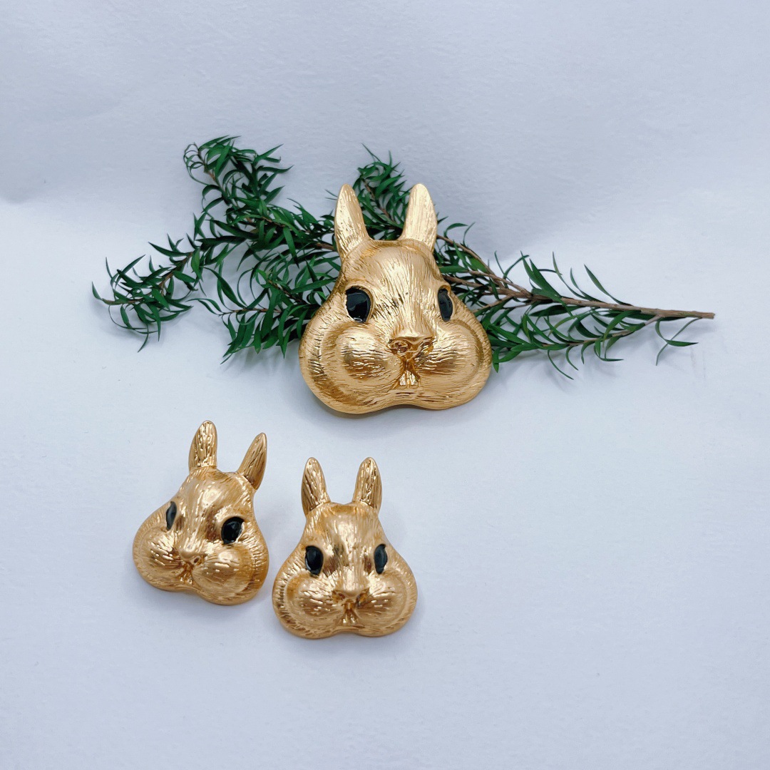 Middle Ancient Plain Gold Enamel Rabbit Brooch Fashion Design Metal Ear Stud Distinctive All-match Ear Accessories Wholesale Women