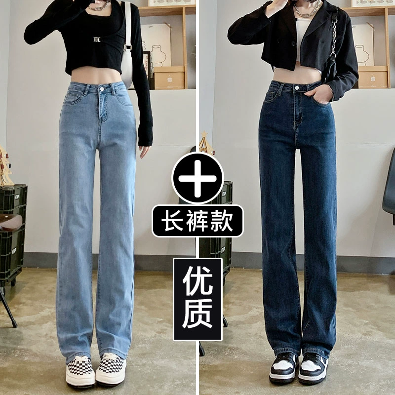 Add velvet straight jeans Women’s spring and autumn 2024 new high -waisted loose nine -point vertical, wide -leg mop pants winter