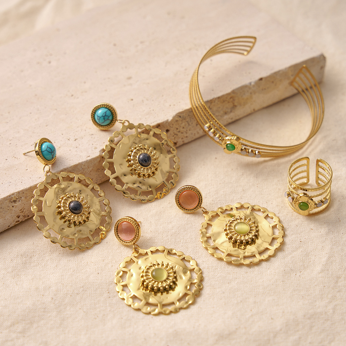 European and American Ins Vintage Titanium Steel Plated Real Gold suit Jewelry Color-free Hot Selling Earrings Women’s High-end Sense Zircon Ring
