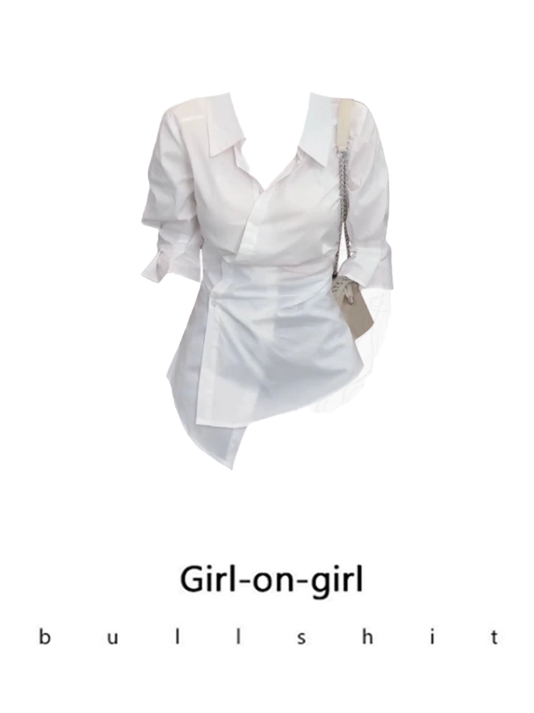 White Lapel Short Sleeve Shirt Women’s Summer Slim Fit Irregular Design Trendy Niche Shirt