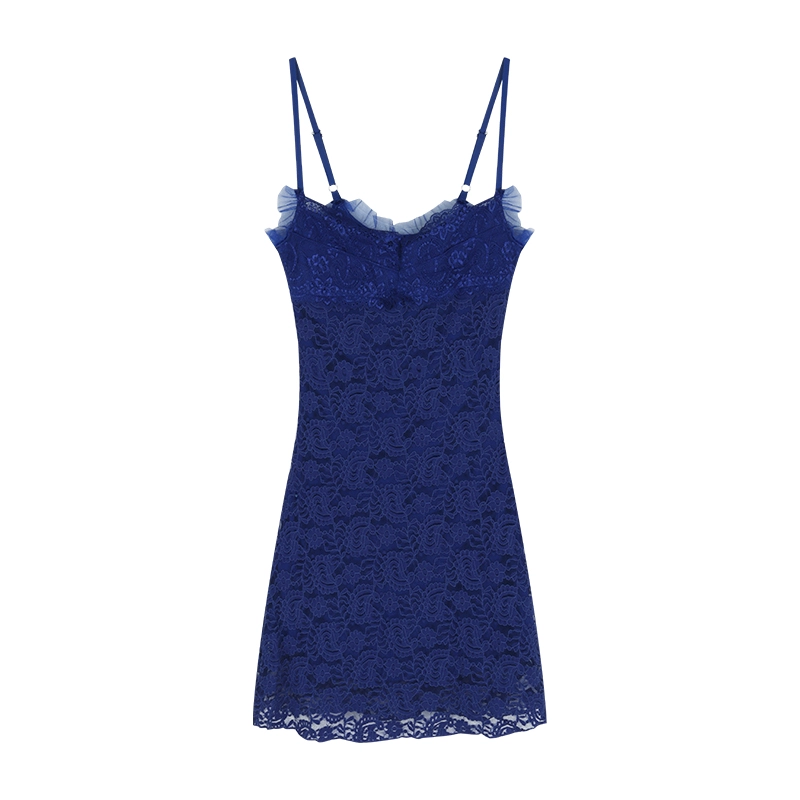 Blue suspender dress summer sexy waist lace